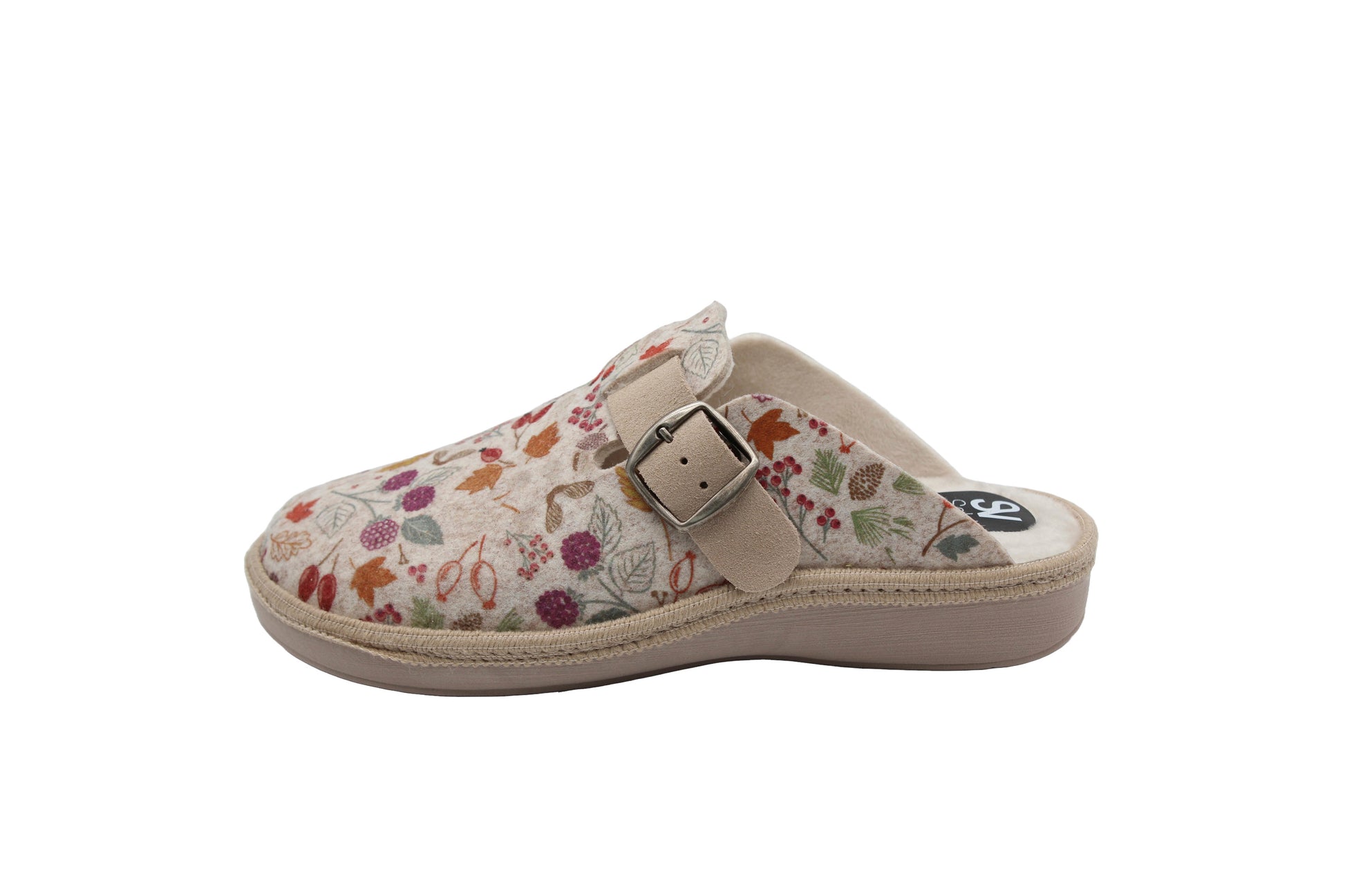 La combinación ideal entre comodidad y calidad. Nuestro zueco con hebilla regulable se adapta perfectamente a tu pie. Fabricado con fieltro estampado creado a partir de botellas de plástico recicladas, tira ajustable de piel y forrado con un interior aterciopelado, ofrece una sensación única de calidez.