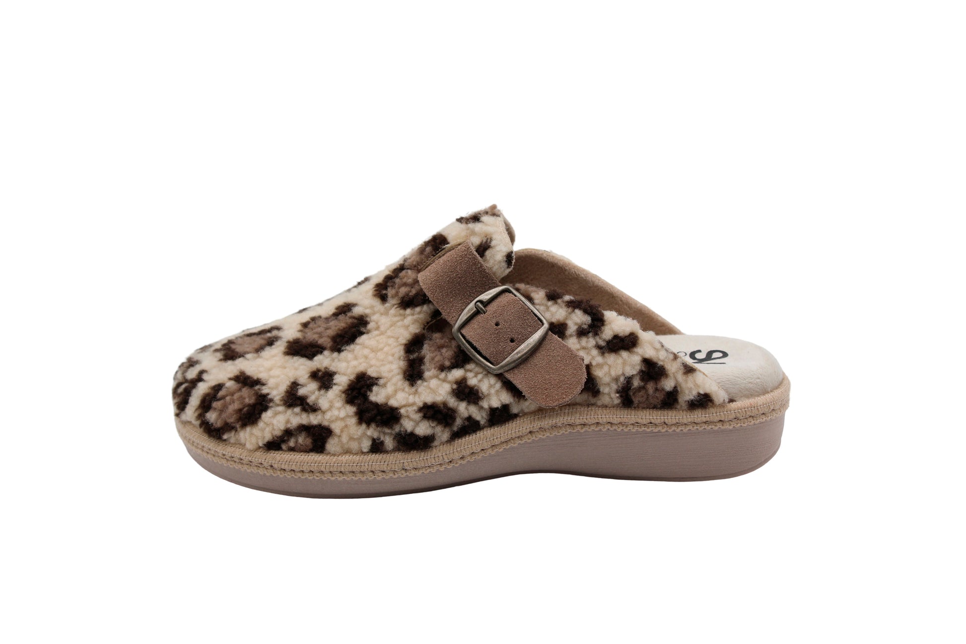 La combinación ideal entre comodidad y calidad. Nuestro zueco con hebilla regulable se adapta perfectamente a tu pie. Fabricado con suave tejido teddy estampado, tira ajustable de piel y forrado con un interior aterciopelado, ofrece una sensación única de calidez. Su plantilla extraíble con memory foam es lavable, asegurando mayor higiene y confort.